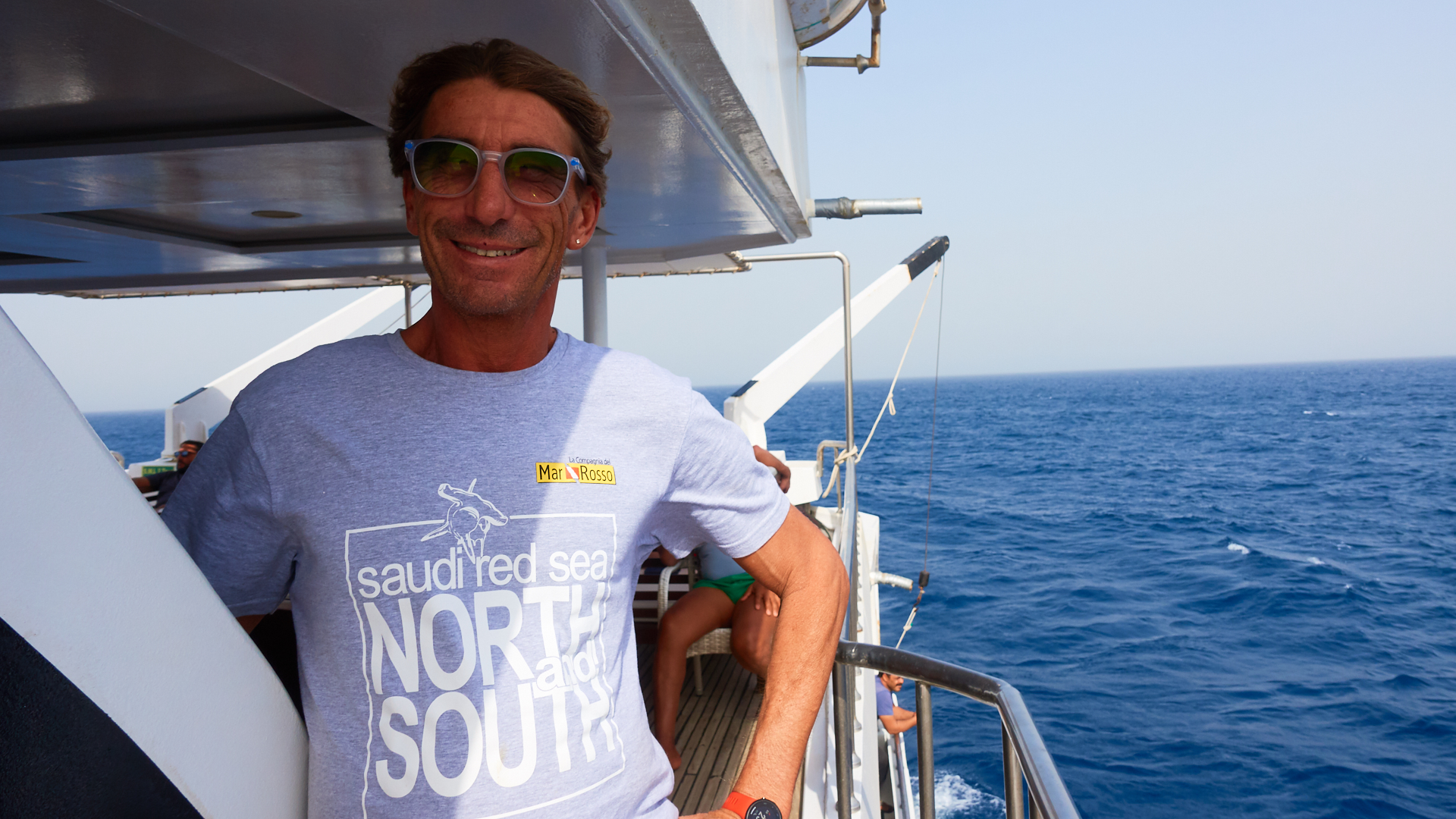 Chef-Guide ist Andrea, ein erfahrener Guide aus Italien, der seit rund 20 Jahren auf Safari-Booten unterwegs ist. Zweiter Guide ist Osama, ein Ägypter, sehr erfahren und fließend in Italienisch. Der Rest der Crew ist überwiegend ägyptisch, eine Person kommt aus dem Jemen.