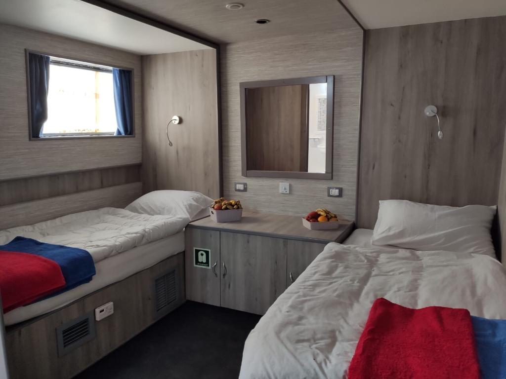 - Fenster/Klima:Keine Fenster zum Öffnen (wie bei vielen Booten). Die Klimaanlage ist eher grob regulierbar – kleinste Stufe war mir etwas frisch (ich bin aber auch eine Frostbeule). Ganz aus ist keine Option.