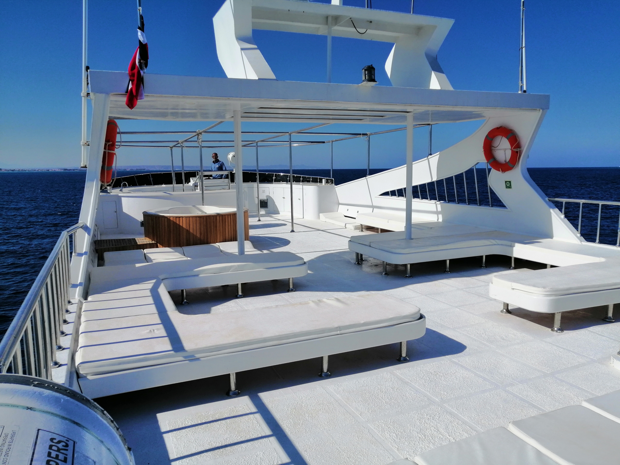 Die Saudi Explorer ist ein Stahlschiff und macht insgesamt einen sehr soliden Eindruck. Kein schwimmendes Hotel, sondern ein Boot, das auch größere Wellen wegsteckt. Es liegt ruhig im Wasser. Da es unter den Saudi-Booten, die wir anbieten, auch das Günstigste ist, starte ich fairerweise mit den kleinen „Haken“: