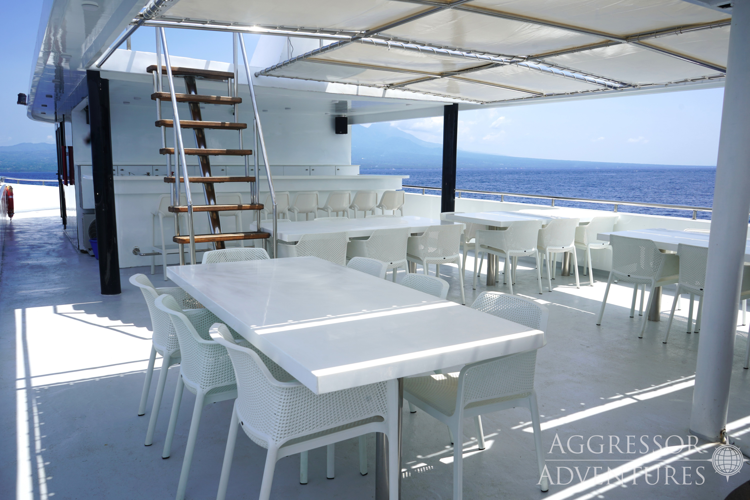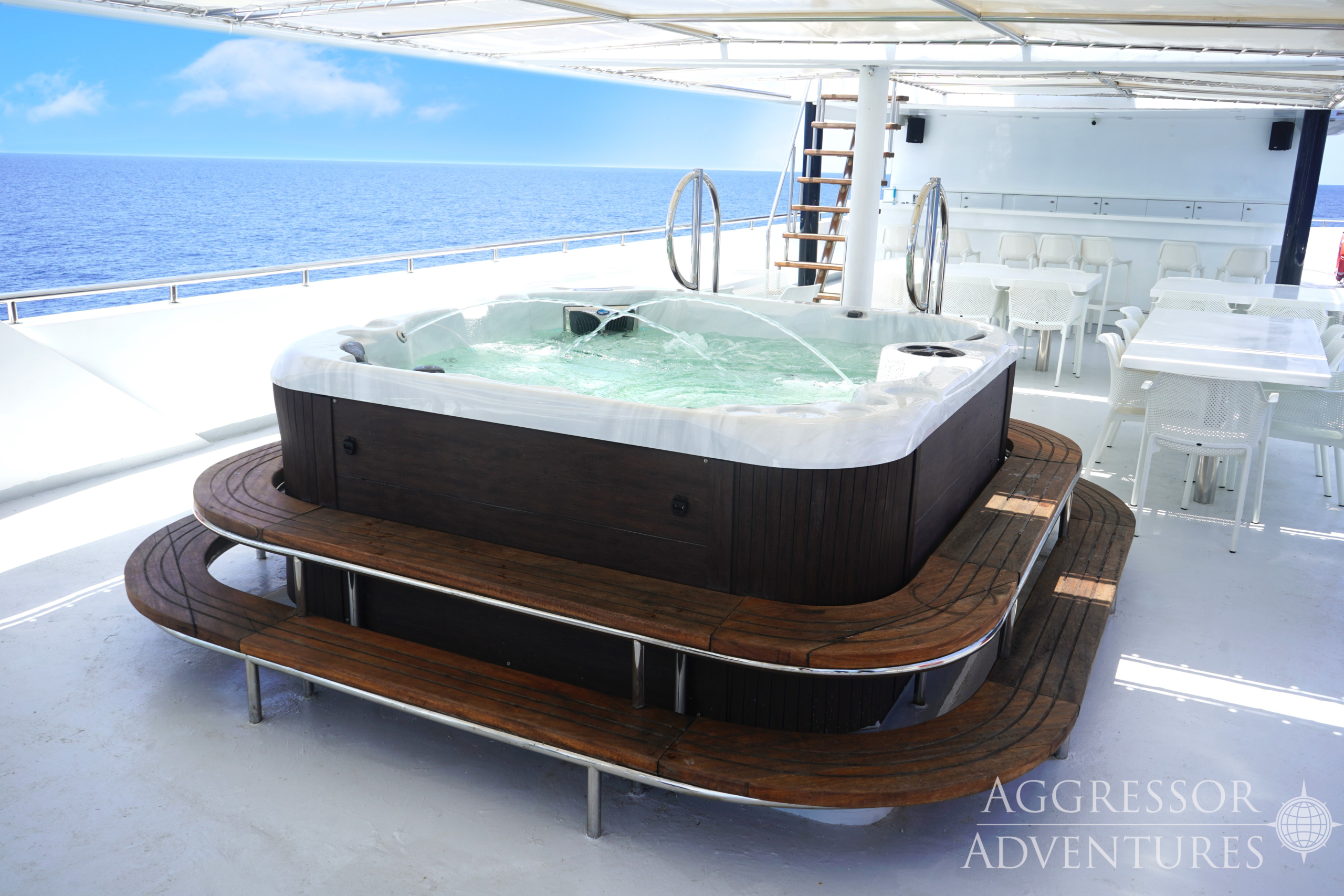 - Tauchdeck: geräumig, beschattet; Kameraraum, Beiboote, Spülbecken